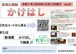 この度、新潟県教育委員会において教育広報誌「かけはし」67号が作成されましたので、御高覧いただきますようお願いします。※データは新潟県HPに掲載しておりますので、以下URL又は左の2次元コードからご確認ください。