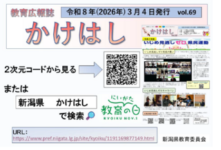 この度、新潟県教育委員会において教育広報誌「かけはし」69号が作成されましたので、御高覧いただきますようお願いします。※データは新潟県HPに掲載しておりますので、下記URL又は右記の2次元コードからご確認ください。