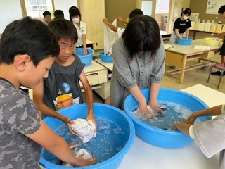 18日(火)に家庭科で洗濯実習をしました。使用した体操着を手洗いで洗い、初めて経験した子が多かったです。