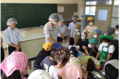 10月9日(木)に、海洋高校の先生と生徒さん4名と一緒に魚醤づくり体験を行いました。 海洋高校の先生から、「鮭の皮や骨、ヒレなどを余すことなく使える方法はないかと考え、この最後の一滴にたどり着いた」というお話をしていただき、子どもたちは「皮がある!」「骨も肉も混じってる!」と実物の材料を見ながら学びました。