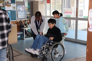 10月29日(水)に車いすユーザーの想いを知り、配慮を学ぶことをねらい、車いす体験をしました。 上越市社会福祉協議会の3名の方からおいでいただきました。 「福祉」についてのお話や2名一組(車いす体験者と介助者)での体験、振り返りをしました。 この車いす体験をもとに、次の人権教育、同和教育の学習時間に読み物教材を使い、障害者だけではなくだれもがともに生きることについて考えていきます。