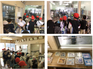 9月25日(木)、先週の大雨で行けなかった中島食品とうふ工場に行ってきました。中島食品のお豆腐や厚揚げなど、家で食べたことがあったり、お店で見たりしたことがあるようでしたが、工場見学は初めてで、どの子も楽しんでいました。ガラス越しでの見学でしたが、大きな豆腐を切っている姿やパック詰めされてベルトコンベアーで運ばれ水の中に入っていく様子を見ることができました。豆腐の作り方や、一日に1万個作っていること、給食で食べている豆腐も中島食品さんで作られていることを知りました。「みんなにおいしいと言われることがうれしい」と言われ、「豆腐を食べたい!」「豆腐を作ってみたい!」と思った子どもたちでした。