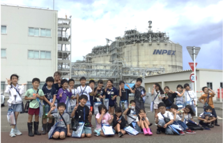 先週のとうふ工場見学から引き続き、今回はINPEXの見学に行きました。一学期の火力発電所の見学の時にも、大きなタンクをバスの中から見ましたが、今度は施設の中まで入れていただきました。