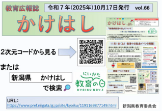 この度、新潟県教育委員会において教育広報誌「かけはし」66号が作成されましたので、御高覧いただきますようお願いします。※データは新潟県HPに掲載しておりますので、下記URL又は左記の2次元コードからご確認ください。