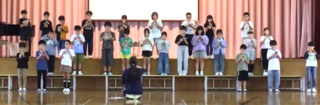 やちほっ子発表会まで、あと2日となりました。1年生は、「くじらぐも」の劇を発表します。お家でもたくさん音読を聞いていただき、ありがとうございます。毎日ステージ練習に取り組み、大きな声でせりふを言うことや、動きを覚えることを一生懸命に練習しているところです!